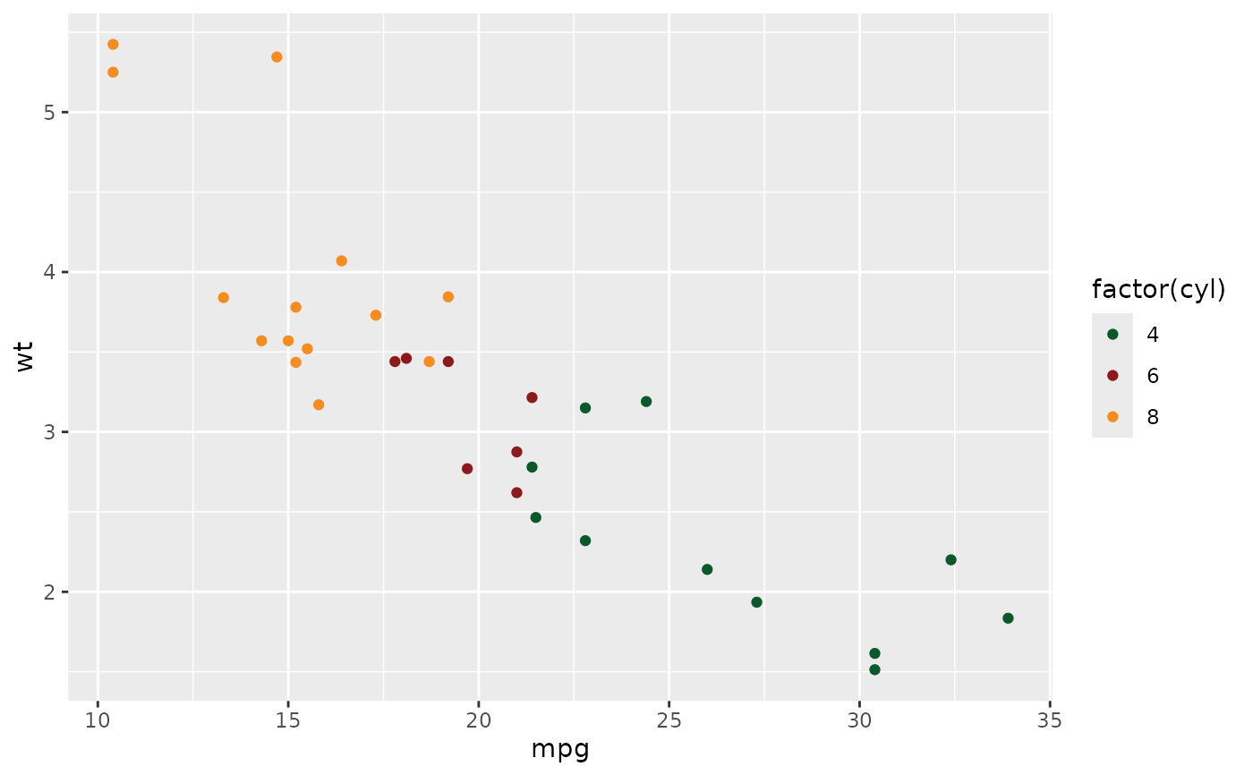 geom_point(aes(colour = factor(cyl))) +